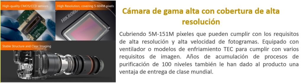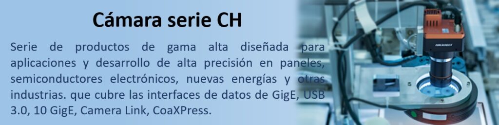 Incluyendo las series CE/CA/CH/CB/CU/CS, HIKROBOT desarrolló cámaras industriales que cubren 0.3-604M píxeles. Todas las series pueden proporcionar una calidad de imagen excelente con interfaces GigE/10GigE/USB 3.0/Camera Link/CoaXPress y sensores de imagen de alta calidad equipados.
